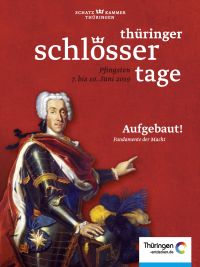 Eindrucksvolle Schlösser, blühende Gärten, historische Theater und erlesene Sammlungen – Thüringen bewahrt ein unvergleichliches Kulturerbe, das jährlich zahlreiche Besucher begeistert. In keinem anderen Landstrich Deutschlands liegen die ehemaligen Fürstenresidenzen mit ihren herausragenden Sehenswürdigkeiten so eng beieinander. Grund genug, dieses Erbe gemeinsam zu präsentieren! Zu Pfingsten laden die Schlösser ein, ihre Schätze während der „Thüringer Schlössertage“ unter einem jährlich wechselnden Motto kennenzulernen. Spannende Führungen, Aktionen und Veranstaltungen für die ganze Familie lassen Besucher aus Nah und Fern Thüringer Residenzkultur immer wieder neu entdecken und vermitteln dabei manch ungeahnte Einsicht.