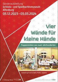 Die traditionelle Weihnachtsausstellung im Schloss- und Spielkartenmuseum widmet sich in diesem Jahr Puppenstuben aus zwei Jahrhunderten. Zum wiederholten Mal konnte das Sammlerehepaar Frank und Hella Müller aus Zwönitz gewonnen werden. Bereits 2017 zeigten sie 60 Puppenstuben und Kaufmannsläden aus ihrer in über vier Jahrzehnten zusammengetragenen, detailgetreuen Sammlung. Puppenstuben bilden die Lebenswelten der Großen im Kleinen ab und gehörten einst in jedes Kinderzimmer. Alltagsszenen des häuslichen und öffentlichen Lebens werden lebendig. Sie vermitteln uns bis heute einen besonderen Blick in die Lebenswelt der Vergangenheit. Da ist zum Beispiel ein Musikzimmer aus der Gründerzeit, in dem sich die Familie versammelt, um dem Klavierspiel des Sprösslings zu lauschen. In der Küche herrscht geschäftiges Treiben. Die Hausfrau ist mit der Weihnachtsbäckerei beschäftigt. Im Kaufmannsladen gehen Waschpulver, Brot, Kuchen und Milchflaschen im Miniformat über die Ladentheke. Selbst die Registrierkasse ist mit Spielgeld benutzbar.