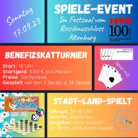 Am 17. September 2023, 10.00 bis 18.00 Uhr, laden das Schloss- & Spielkartenmuseum in Zusammenarbeit mit den Altenburger Spieletagen und dem Deutschen Skatverband zum Spielen in den Festsaal des Residenzschlosses ein.