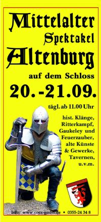 „Mittelalter erleben“- zum 15. Male lädt das Residenzschloss in Altenburg vom 20. bis 21.September zum historischen Spektakel ein.