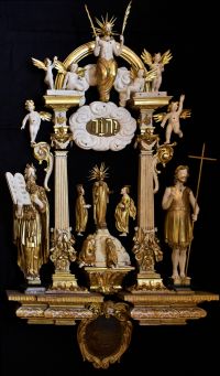 Nach fast 50 Jahren ist das große Epitaph im Zuge der Sonderausstellung im Goldsaal das erste Mal wieder in Teilen aufgebaut worden. Über 30 Einzelteil wurde dafür in dem letzten 2 Jahren gereinigt und konserviert ; unter Zuhilfenahme der angehenden Studenten des Altenburger Praxisjahres für Restaurierung.